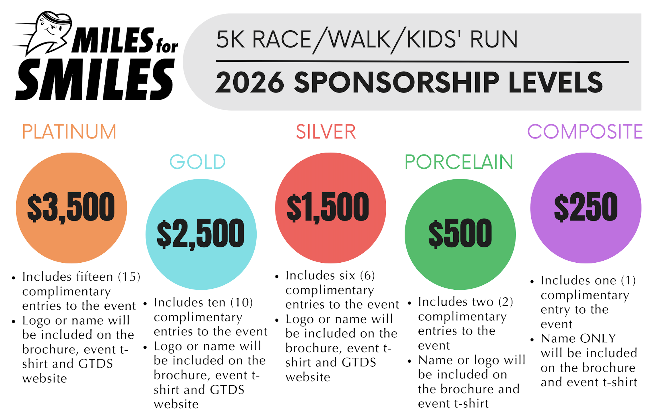 This is the motto for Miles for Smiles, a Greater Toledo Dental Society sponsored event that brings the dental community together for a day of fun, fitness, and fundraising. Dentists, hygienists, dental assistants, staff, friends, family, and patients annually take part in the 5k run/walk and Kids Fun Run to raise funds to help provide dental services for those in need.