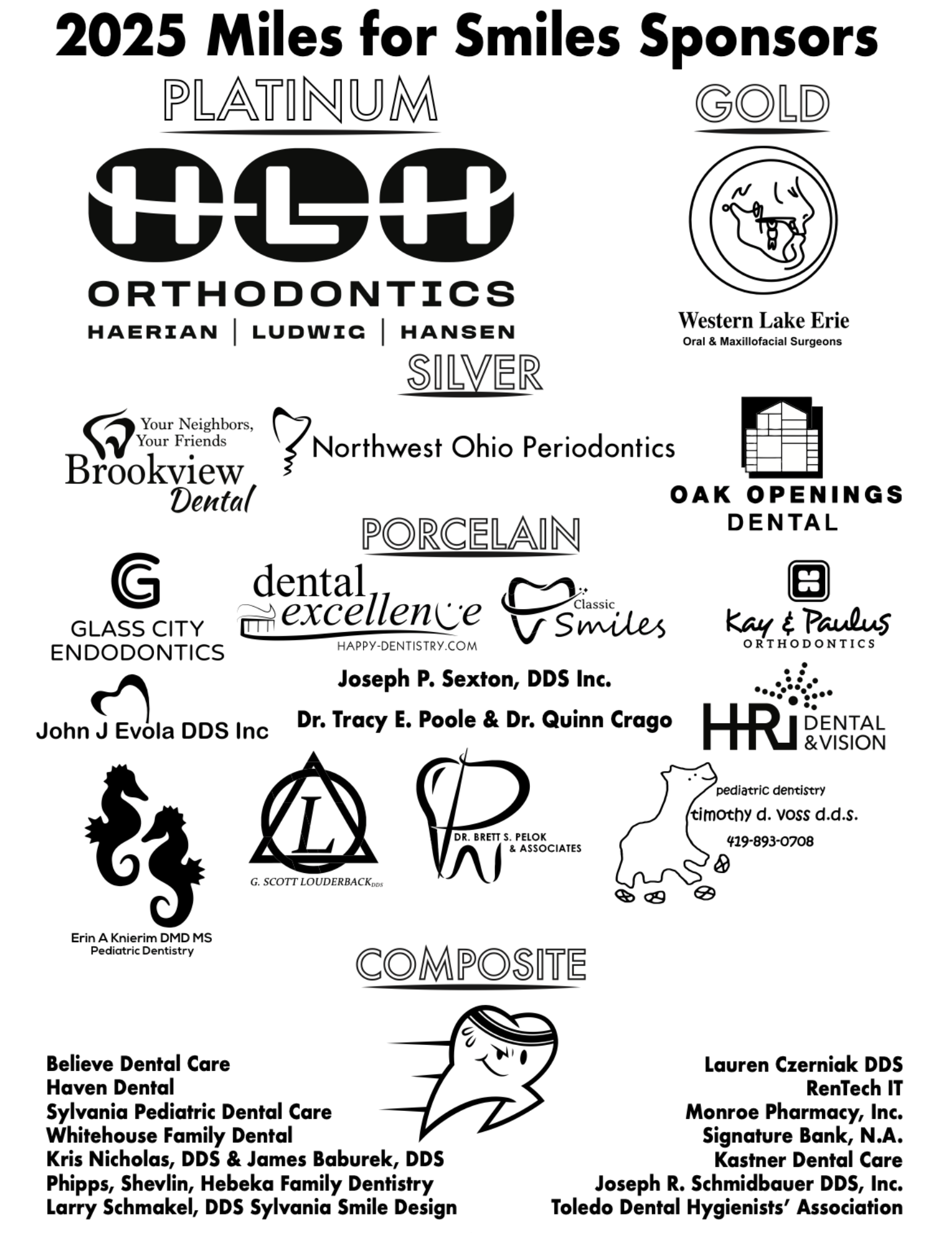 There were several recipients of the Miles for Smiles fundraising efforts from 2024. We assisted cancer patients in need of dental care to support their treatment, donated dental floss and denture adhesive to underserved in need, funded dental services for the unhoused and marginally housed in downtown Toledo, and supported a new community dental clinic in the greater Toledo area. We will continue on with our community service efforts in 2025.